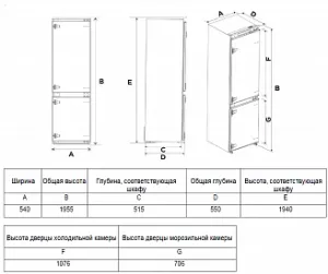 Ш х В х Г = 540 х 1977 х 555 мм