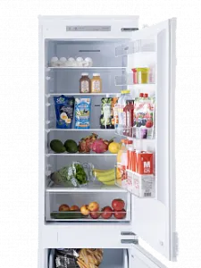 Интегрируемые холодильники полностью встраиваются под фасад, их совсем не видно на кухне. Таким образом, вы можете позволить себе любой дизайн и стиль кухонного пространства. Вы можете использовать один и более холодильных модулей. Установите два холодильника в разные части кухни, чтобы получить дополнительный объем.