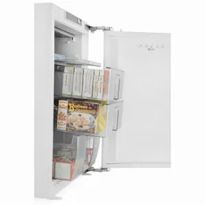 Все ваши ящики свободно выдвигаются даже при установке техники в углу кухни. В сочетании с возможностью перенавесить двери, вы получаете полную свободу выбора местадля вашей морозильной камеры!
