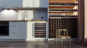 В винный шкаф встроен угольный фильтр, который будет очищать поступающий воздух от посторонних запахов, которые губительно влияют на вкусовые качества вина.