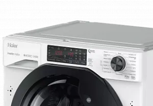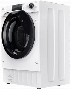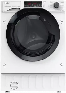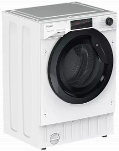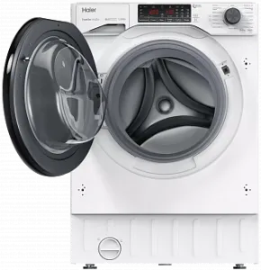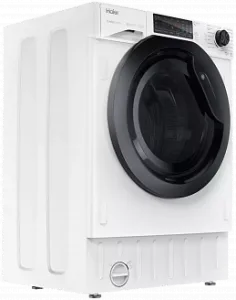 Встраиваемая стирально-сушильная машина Haier HWDQ90B416FWB-RU имеет один барабан и вмещает до 9 килограмм белья в режиме стирки и до 5 килограмм — в режиме сушки. Модель работает за счет инверторного мотора, максимальное число оборотов в минуту при отжиме — 1600.