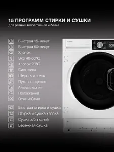 Программы стирки: Быстрая стирка, Предварительная стирка, Дополнительное полоскание