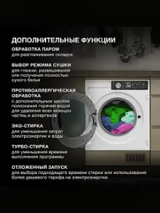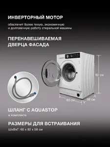 Комплектация: Встраиваемая стиральная машина, документация, упаковка