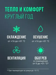Кондиционер эффективно работает в режиме обогрева при температуре наружного воздуха до –15°С
