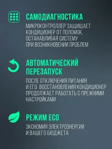 Плавно регулирует мощность кондиционера, обеспечивает экономию до 40% электроэнергии, бесшумность и точное поддержание температуры.
