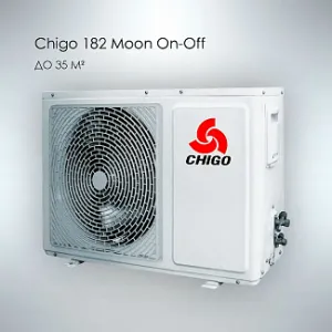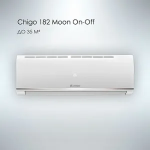 Настенный кондиционер CHIGO серии 182 Moon On-Off, сборка завода CHIGO– это неинверторная on/off модель с показателем энергоэффективности A. Заправлен экологичным хладагентом R410A. Сплит-система достаточно производительна, работает на охлаждение и обогрев. Бытовое оборудование линейки CHIGO серии 182 Moon On-Off эффективно для обслуживания помещений площадью до 35 м2. Кондиционеры просты в установке и обслуживании. Внутренний настенный блок белого цвета выполнен в минималистичном стильном дизайне. Цифровой дисплей на внутреннем блоке всегда проинформирует присутствующих о поддерживаемой температуре в помещении. Бытовая настенная сплит система оснащена режимами вентиляции и осушения, что способствует качественному очищению воздуха в обслуживаемой комнате (спальня, детская, гостиная, магазин, небольшой офис и др.). Наружные блоки бытовой техники Чиго серии 182 Moon On-Off работают на охлаждение при температуре от 16 °C ~ +46 °C и на обогрев от -7 °C ~ +46°C за окном. Поддерживают температуру в комнате от 16 до 30 градусов. Оснащены качественным энергоэффективным компрессором GREE, срок службы которого достигает 15-25 лет.