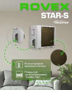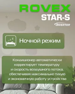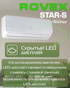 В данной модели сплит-системы Rovex функция самодиагностики запускается процессором автоматически. Система самодиагностики проверяет отклонения основных параметров от их допустимых значений. Эта же система отключит кондиционер при неправильной эксплуатации или перегрузке.