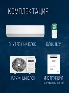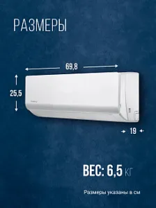 Особенности кондиционера: Авторестарт, Защита от замерзания, Пульт ДУ, Регулировка направления воздушного потока, Таймер включения, Таймер выключения, Wi-Fi модуль, Антикоррозийное покрытие, Скрытый дисплей, Диагностика неисправностей
