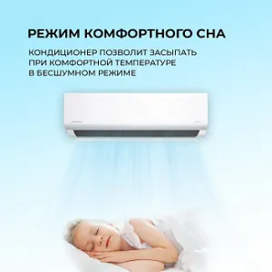 При помощи функции Sleep на пульте дистанционного управления блок очень просто настраивается на режим с самым низким уровнем шума, что обеспечит комфортный сон во время ночной работы кондиционера.