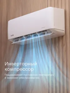 Мощность устройства — 9 000 БТЕ: подходит для комнат до 26 м². Кондиционер добавит воздуха и в небольшую спальню, и в просторную гостиную.