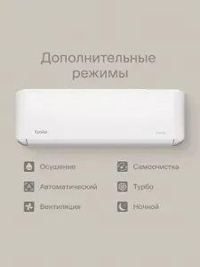 У кондиционера 8 режимов: от автоматического до функции осушения. Температура регулируется даже во время сна: в специальном ночном режиме устройство приглушает подсветку и незаметно работает.