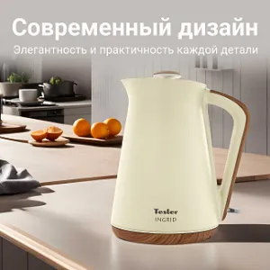 Электрочайник Tesler INGRID KT-1740 предлагает пользователю бескомпромиссное качество, долговечность и безопасность. Комбинация высококачественных материалов – нержавеющая сталь и декоративный пластик "под дерево" – особо подчёркивает выразительный внешний вид. Основательность во всём – это Tesler INGRID.
