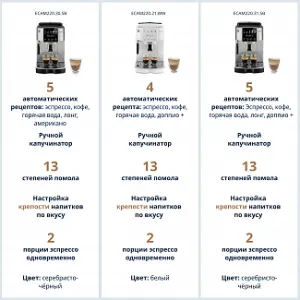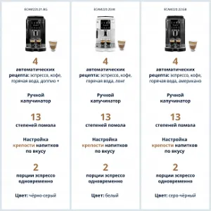 Соответствие мировым стандартам и наличие сертификатов ISO гарантирует безопасность и надежность выпускаемой продукции. DeLonghi предоставляет гарантию своим покупателям на всю выпускаемую технику.