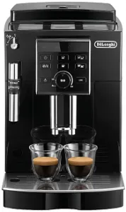 Кофемашина DeLonghi ECAM 23.120.B с рабочим давлением 15 бар и мощностью 1450 Вт позволяет за один цикл приготовить две порции эспрессо или латте.