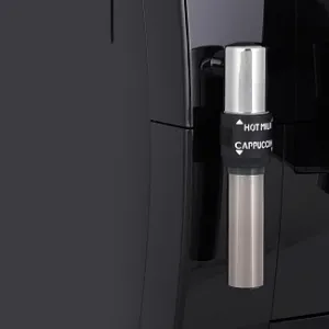 Специальная функция предназначена для подогрева чашек с целью сохранения вкуса и аромата напитка. Жернова из нержавеющей стали качественно перемалывают зерна до оптимальной степени, которую можно выбрать в соответствии с личными предпочтениями. Модель оснащена ручным капучинатором для взбивания густой плотной пенки или получения горячего шоколада. Для сбора капель жидкости есть съемный поддон.
