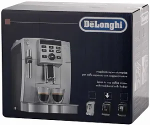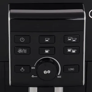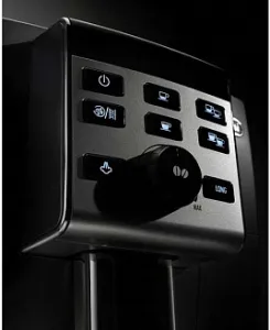 Устройство автоматически отключается при бездействии в течение определенного времени. Это снижает потребление электрической энергии и вероятность возникновения неполадок. Изменение температуры и других параметров осуществляется посредством кнопок и поворотного регулятора, расположенных на фронтальной части модели. Индикаторы оповещают об отсутствии воды в резервуаре, необходимости очистки, готовности к работе. Корпус кофемашины DeLonghi ECAM 23.120.B произведен из прочного пластика, устойчивого к образованию царапин и деформации.