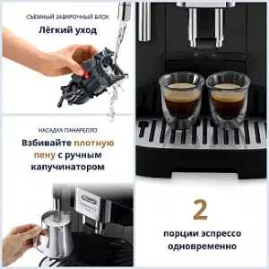 Наслаждайтесь непревзойденным вкусом кофе, не выходя из собственного дома, с кофеваркой De'Longhi Magnifica Evo. Приготовьте идеальный эспрессо из свежемолотых зерен по одному из 4 рецептов, доступных одним нажатием кнопки. Имеет интуитивно понятный сенсорный дисплей с цветными значками для каждого рецепта. Его стильная черная отделка станет идеальным дополнением любой современной кухни.