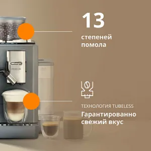 С Rivelia от De'Longhi вы сможете наслаждаться лучшим кофе, настроенным под ваш вкус и требования, в любое время дня. Кроме того, стильный и компактный дизайн с закругленными углами и черным оттенком оникса делает эту кофемашину прекрасным дополнением любой кухни или офисного помещения.