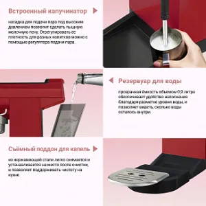 Кофеварка с рожковой системой Tesler ECM-260 обеспечивает идеальное извлечение аромата кофе, придавая каждой чашке неповторимый насыщенный вкус. Благодаря ручному капучинатору и функции вспенивания молока с её помощью можно приготовить не только ароматный эспрессо, но и воздушный капучино, бархатистый латте и любые другие напитки, которые готовятся на основе эспрессо.