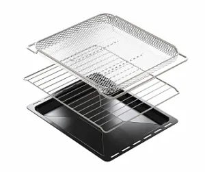 Комплектация: корзина для аэрогриля, противень эмалированный квадратный, противень эмалированный круглый, решетка