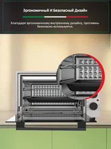 Режимы приготовления: аэрогриль, верхний + нижний нагрев, верхний нагрев, конвекция, нижний нагрев