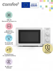 Выбирая микроволновую печь Comfee CMW719L2W-W, вы получаете надежное и функциональное устройство, которое поможет вам быстро и вкусно приготовить разнообразные блюда.