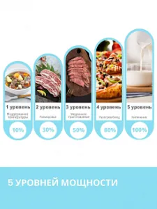 Высокая мощность для быстрого и равномерного приготовления и разогрева блюд.