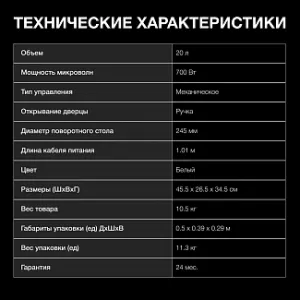 Макс. мощность СВЧ, Вт 700