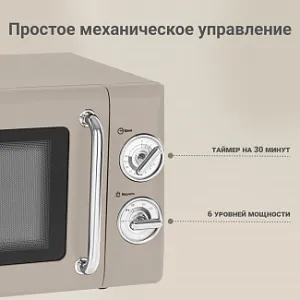 - Простое механическое управление, 6 уровней мощности, таймер на 30 минут и подсветка в зоне приготовления.
