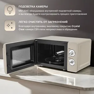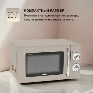 Микроволновая печь Tesler MM-2045 из серии Elizabeth – это простая и надёжная СВЧ, в которой предусмотрено несколько режимов мощности, таймер и система равномерного распределения микроволнового излучения. Вместительная (20 литров) при компактном размере, она легко впишется в интерьер вашей кухни и не займет много места. Корпус из высококачественной стали дополнен ручками установки таймера и мощности в стиле винтажных переключателей "реле".