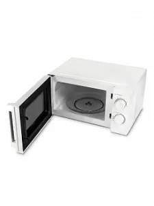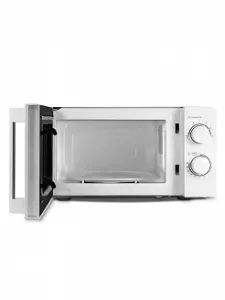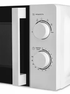 Таймер рассчитан на 30 минут и автоматически отключает печь после завершения цикла. Встроенная подсветка дает полный обзор содержимого, а стеклянный поворотный стол диаметром 245 мм равномерно распределяет микроволны, прогревая еду одинаково по краям и в центре. Функция разморозки помогает бережно довести продукты до нужного состояния, сохраняя структуру и вкус. Полноразмерное стекло дверцы делает устройство визуально современным, а бело-серебристая отделка органично вписывается в любой интерьер.