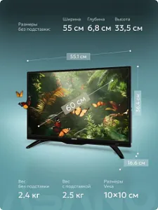 LED-телевизор Asano 24LH5010T оснащен экраном диагональю 23.8 дюйма с разрешением 1366x768 пикселей. Платформа Smart TV под управлением ОС Салют открывает доступ к развлекательным потоковым сервисам и приложениям. Беспроводное соединение с интернетом выполняется при помощи встроенного модуля Wi-Fi.
