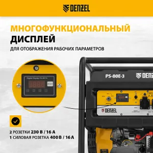 Бензиновый генератор Denzel PS 80 E-3 946954 с топливным баком объемом 25 л и электростартером поддерживает напряжение в сети 230 В и 400 В и используется в качестве резервного источника питания для снабжения однофазным или трехфазным током различного оборудования суммарной мощностью до 6,6 кВт. Подходит для использования как в загородном доме, так и на строительной площадке. Благодаря увеличенному топливному баку генератор способен до 10 часов работать без дозаправки.