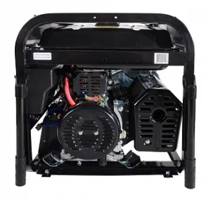 Работает генератор от четырехтактного двигателя с карбюраторной системой подачи топлива мощностью 13 л.с. Для его работы подойдет обычный бензин, а при установке доп. оборудования генератор можно переоборудовать под работу на газе. При этом генератор способен работать длительное время без остановки благодаря вместительному топливному баку на 22 л.