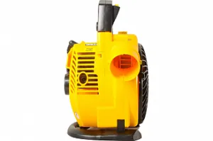 Данная садовая техника отличается высокой надежностью, небольшим весом и автономностью работы. Двигатель с воздушным охлаждением работает на смеси бензина и моторного масла (40:1). Запуск обеспечивается ручным пружинным стартером, который легко приведет в действие мотор в любых условиях. Топливный бак вмещает 0,75 л горючего. Воздуходувка весит всего 4,5 кг.